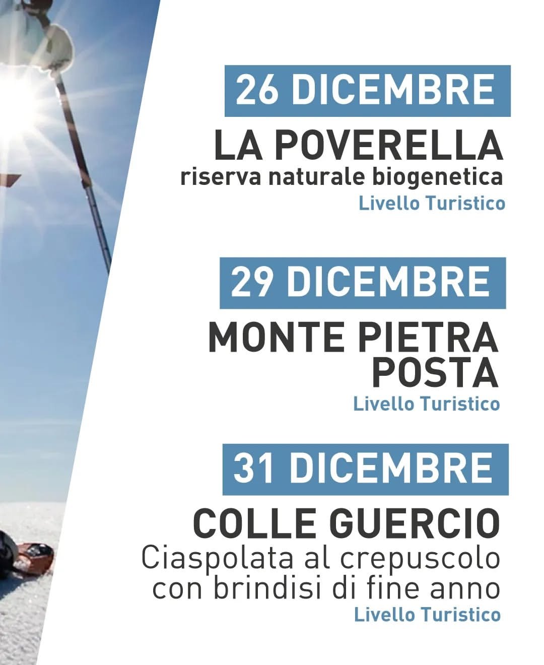 Orari: 9:30 (escursioni diurne) e 15:30 (ciaspolata al crepuscolo)