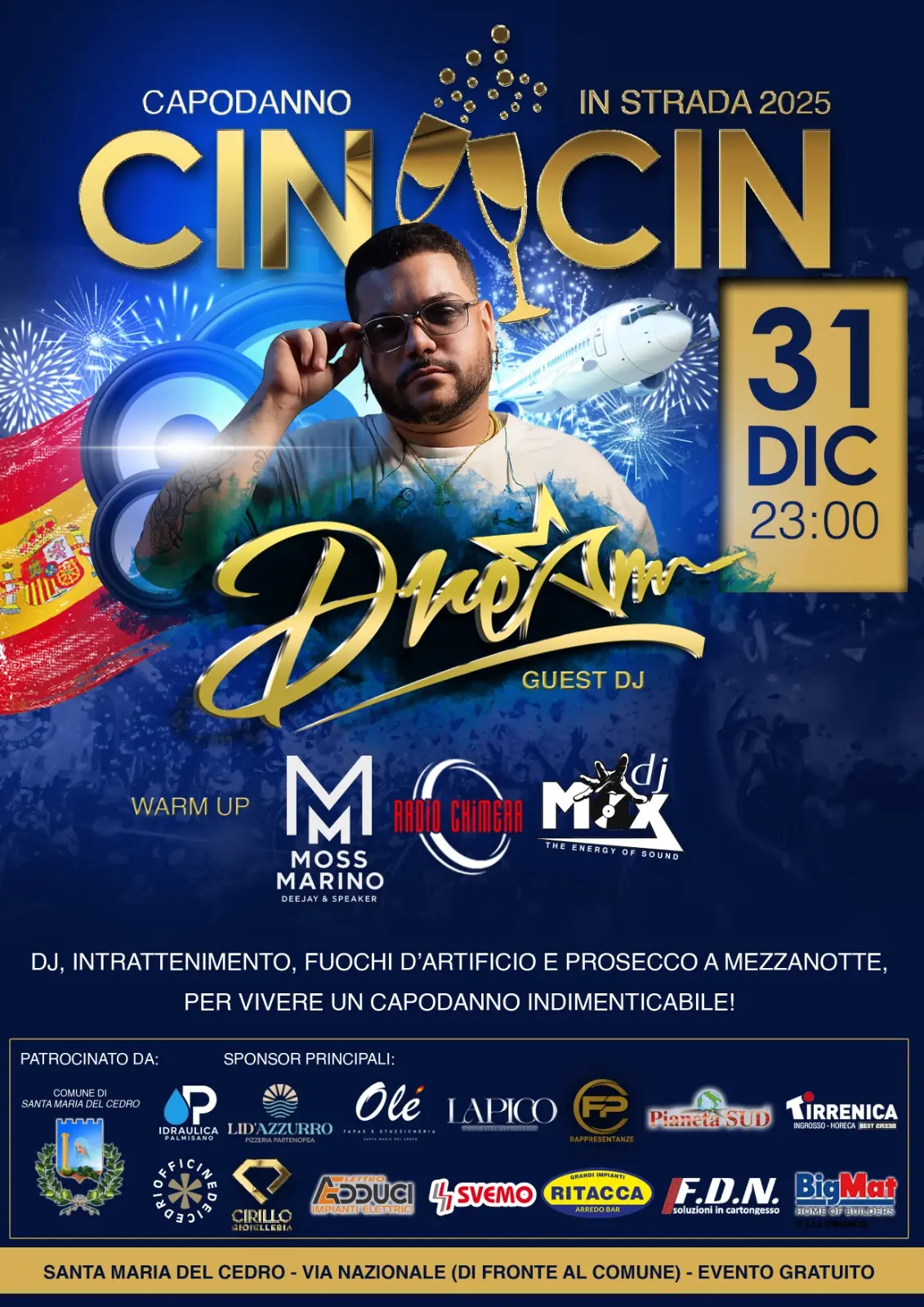 Dalle 00:15 alle 04:00, DJ Dream farà vivere un after party di atmosfera internazionale, forte dell’esperienza maturata a Tenerife tra club, festival e grandi eventi. Il suo set unirà sonorità globali, ritmi latini e influenze canarie, trasformando la notte di Capodanno in un concentrato di energia e divertimento.