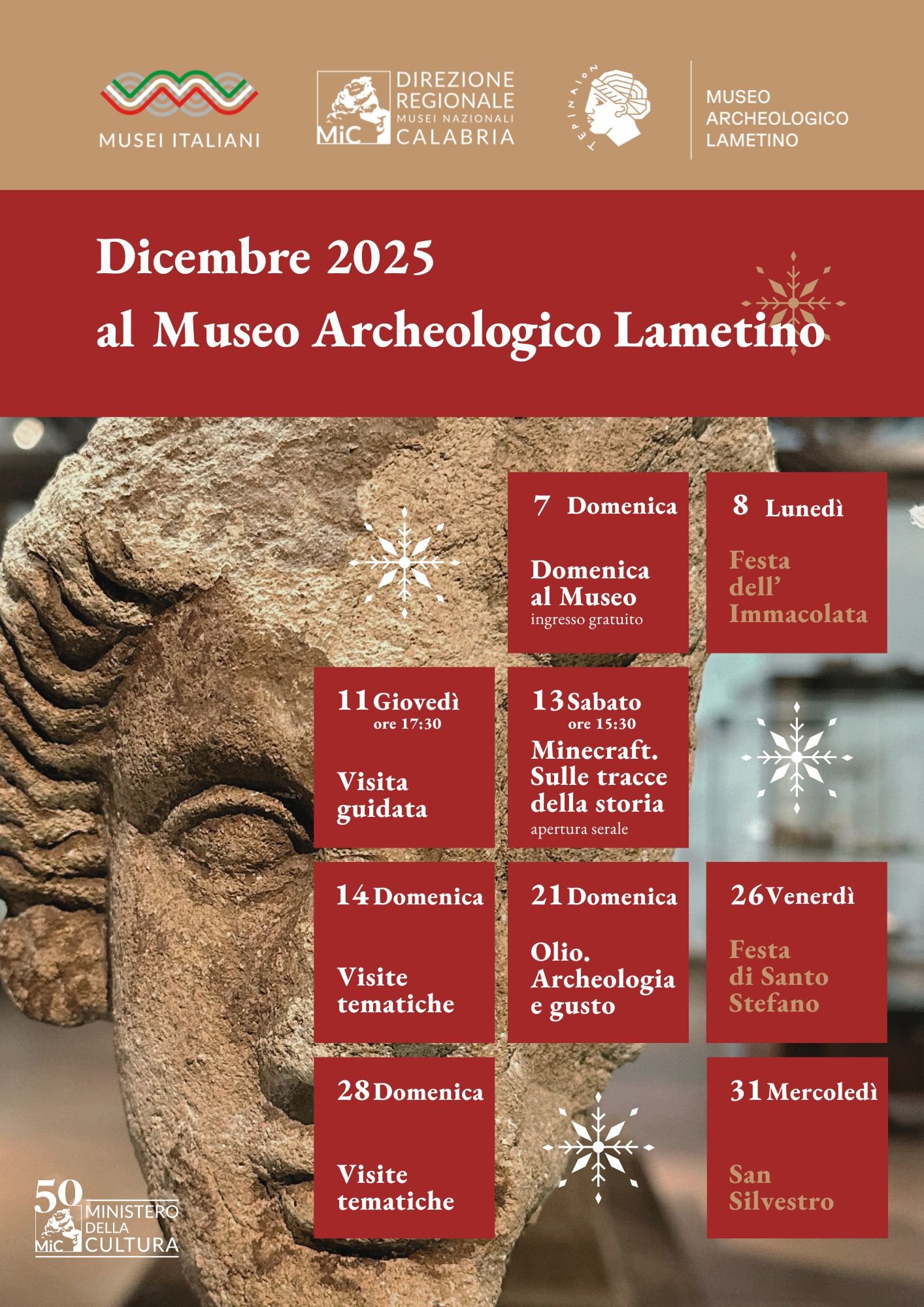 Dal 7 al 31 dicembre 2025, il Museo Archeologico Lametino di Lamezia Terme (CZ) propone un programma dedicato alla scoperta della storia e delle tradizioni locali.