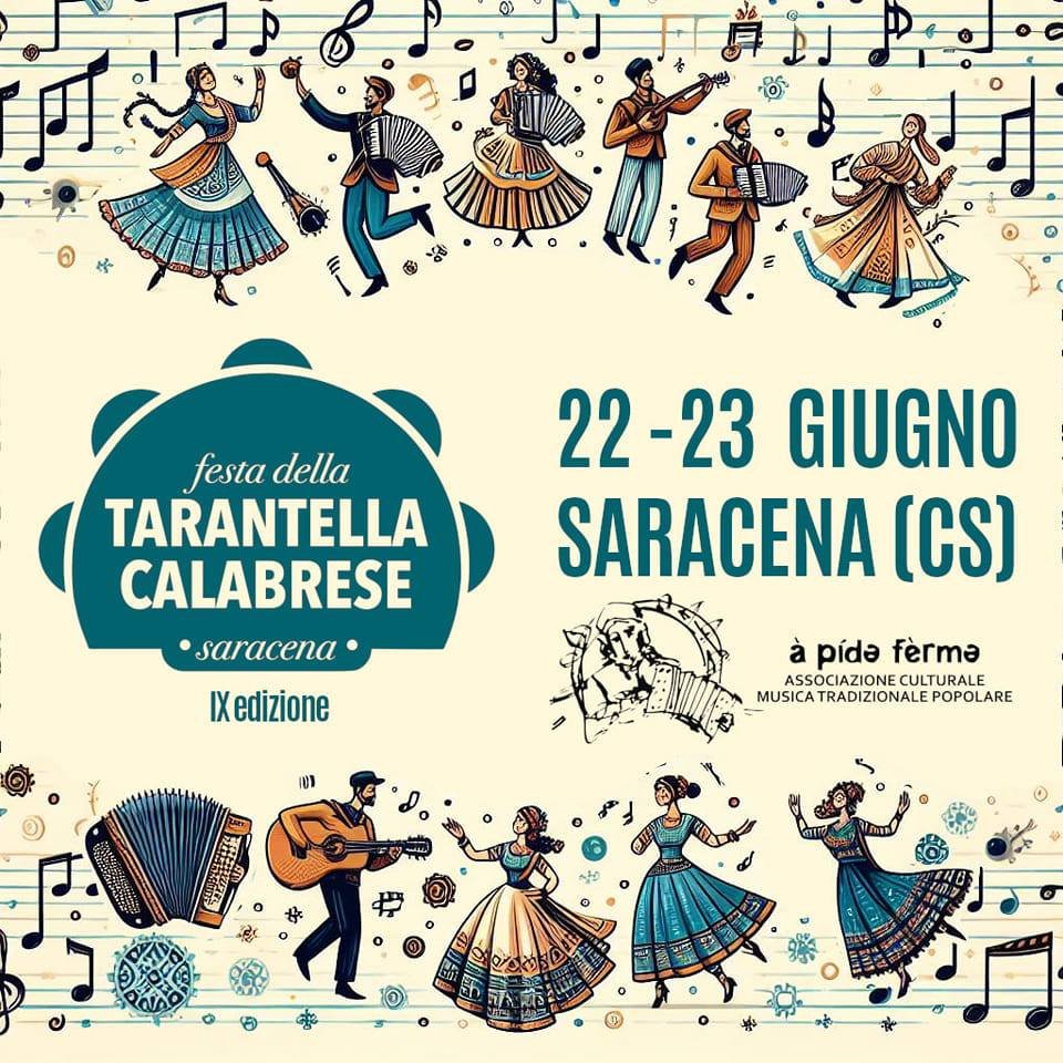 La IX edizione della Festa della Tarantella Calabrese si terrà a Saracena nei giorni 22 e 23 Giugno 2024. Un’occasione imperdibile per immergersi nella cultura popolare calabrese e vivere due serate all’insegna del divertimento e della spensieratezza.