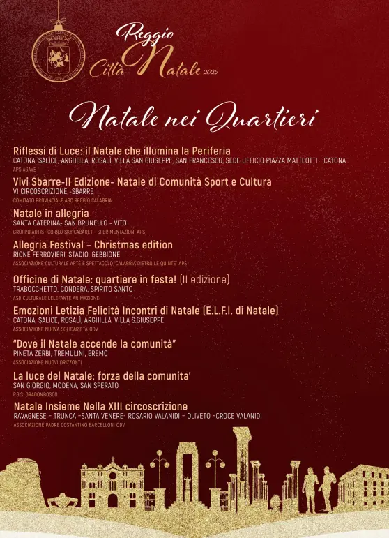 Passeggiando tra le vie illuminate, sarà possibile vivere l’atmosfera tipica delle feste e riscoprire usanze e sapori che da sempre caratterizzano il Natale reggino.