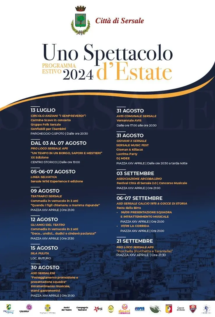 La città di Sersale si appresta a vivere un’estate ricca di emozioni con la rassegna “Uno spettacolo d’estate”. Per tutto il mese di luglio e agosto, il borgo calabrese si anima con un calendario fitto di appuntamenti che spaziano dalla musica dal vivo all’enogastronomia, passando per spettacoli teatrali e iniziative culturali.