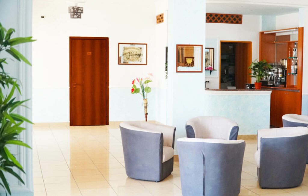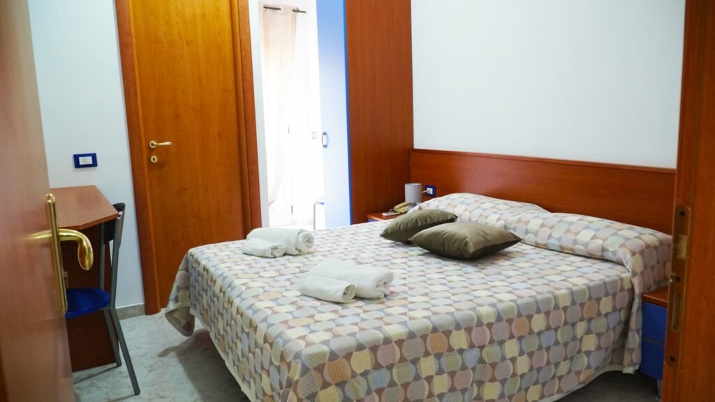 La struttura, disposta su due piani, offre camere matrimoniali, triple, quadruple e bilocali per famiglie, tutte dotate di balcone, aria condizionata, TV, frigo, e bagno privato con doccia. Ogni dettaglio è pensato per garantire comfort e tranquillità.